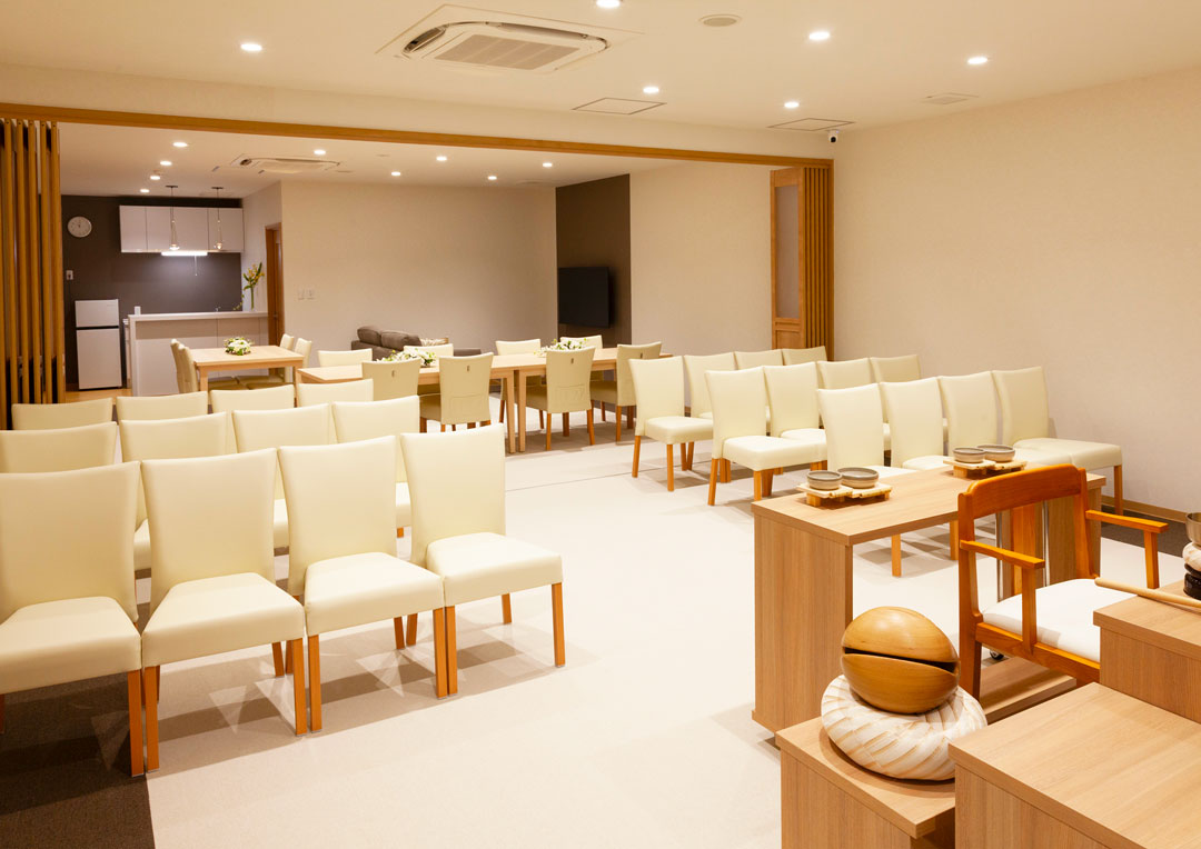 そういった方に、「自宅のリビング」を意識した作りで、ご家族でゆっくりとお別れ出来る空間の提供をいたします。